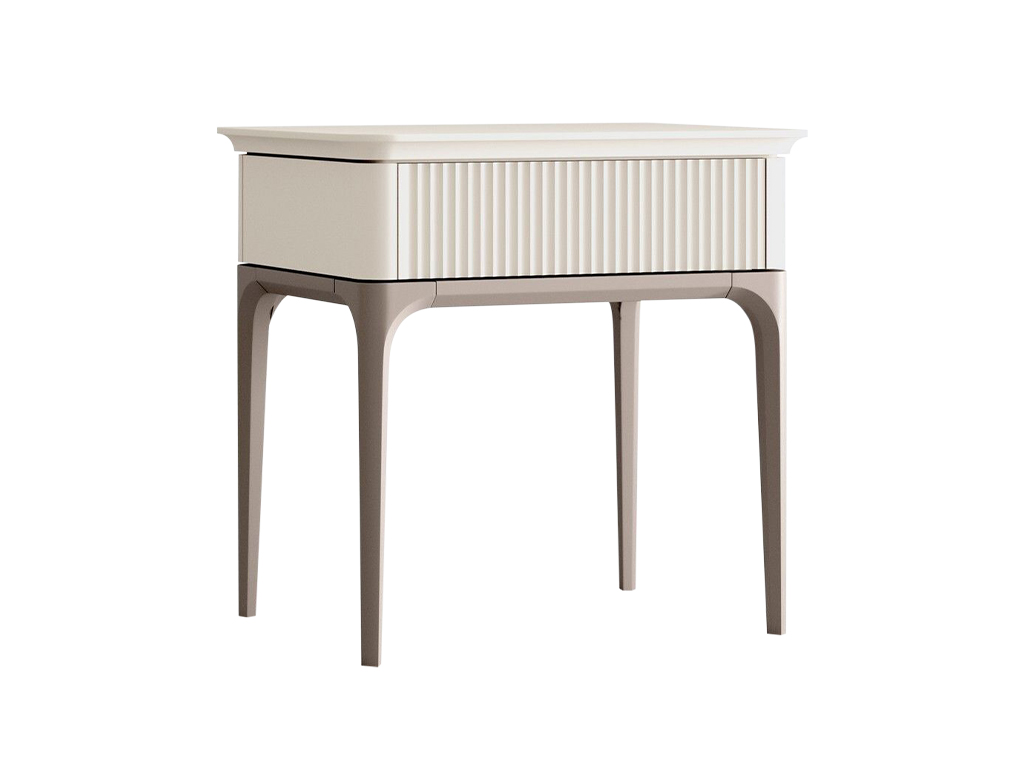 Верхняя часть окрашена в цвет светлый беж (K07 - ближайший RAL 9001), низ в коричневый цвет (K09 - ncs 4005 y50r). Имеет систему открывания TIP-ON, открывание ящиков простым нажатием на фасад.