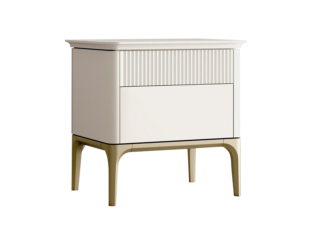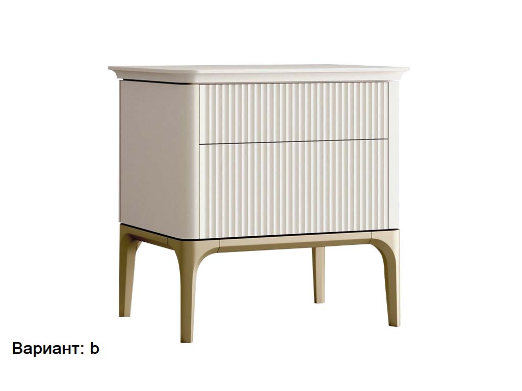 Верхняя часть окрашена в цвет светлый беж (K07 - ближайший RAL 9001), низ золотая патина. Имеет систему открывания TIP-ON, открывание ящиков простым нажатием на фасад.