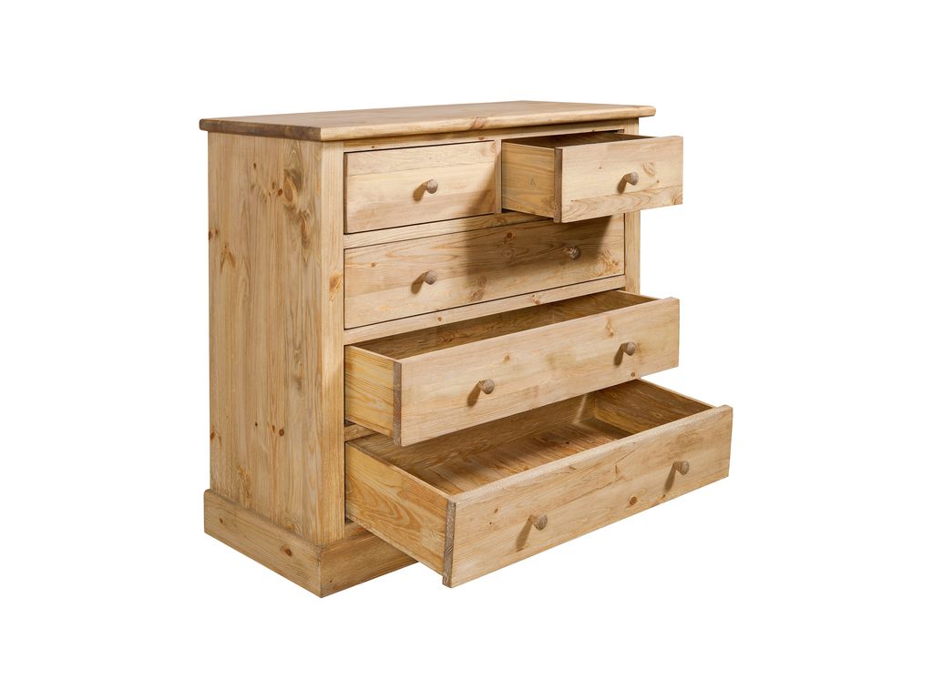 5 выдвижных ящиков на деревянных полозьях. Внутренние размеры ящиков: верхние - 390х360х140 мм, нижние - 760х360х140 мм. Прямой цоколь. Ручки деревянные 8 шт.