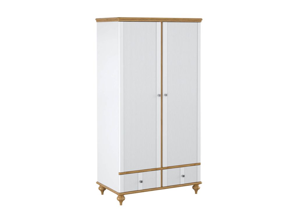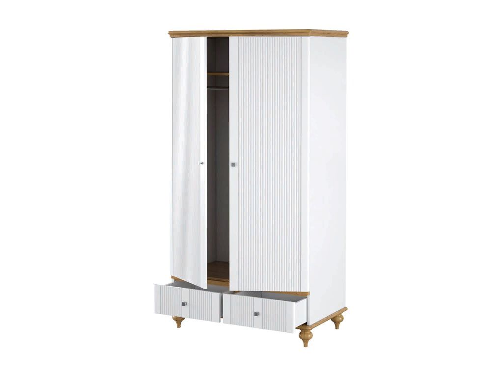 Описание: шкаф оснащен двумя выдвижными ящиками и двумя штангами. Фурнитура на ящиках с доводчиками. Высокие ножки обеспечивают оптимальный доступ при уборке.
