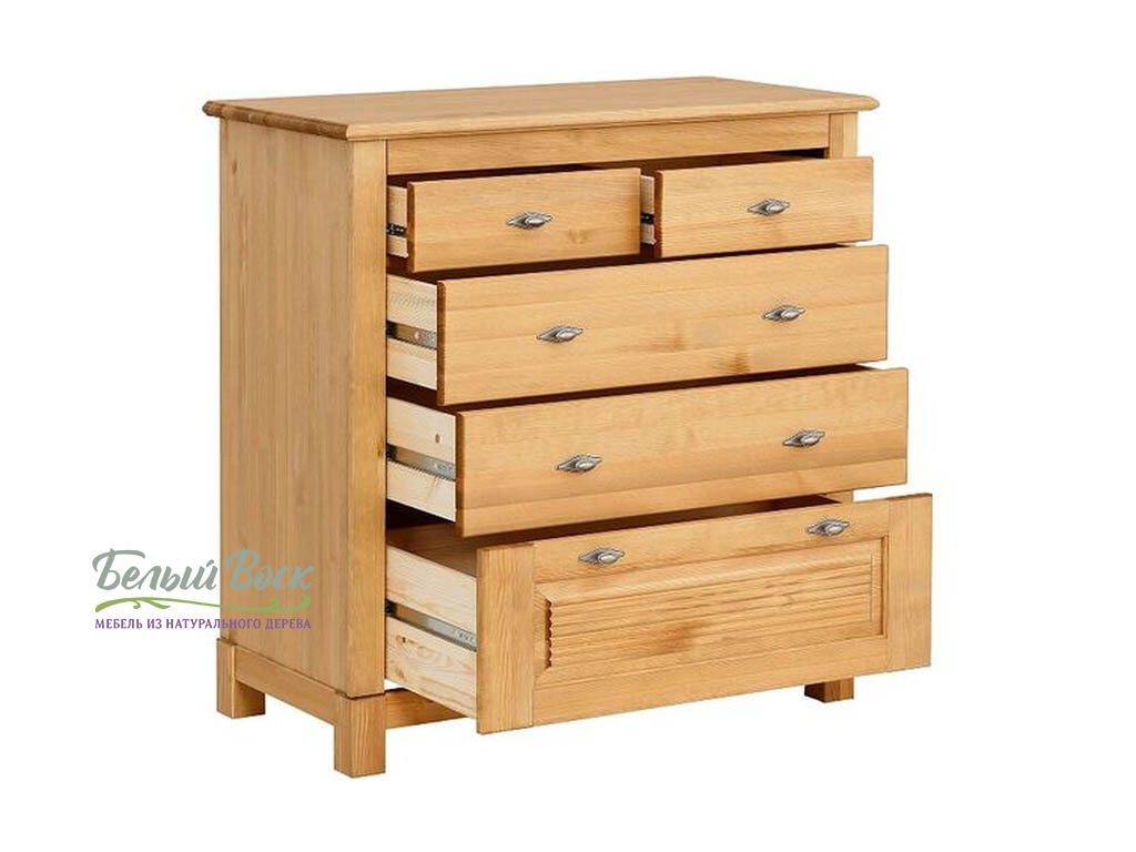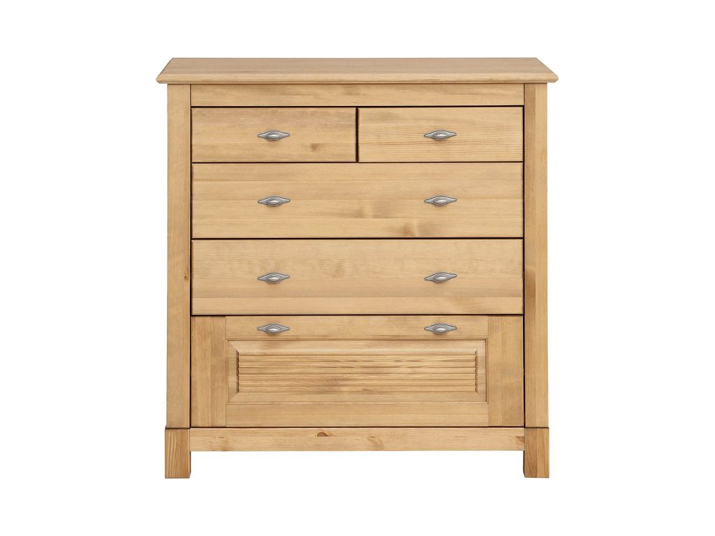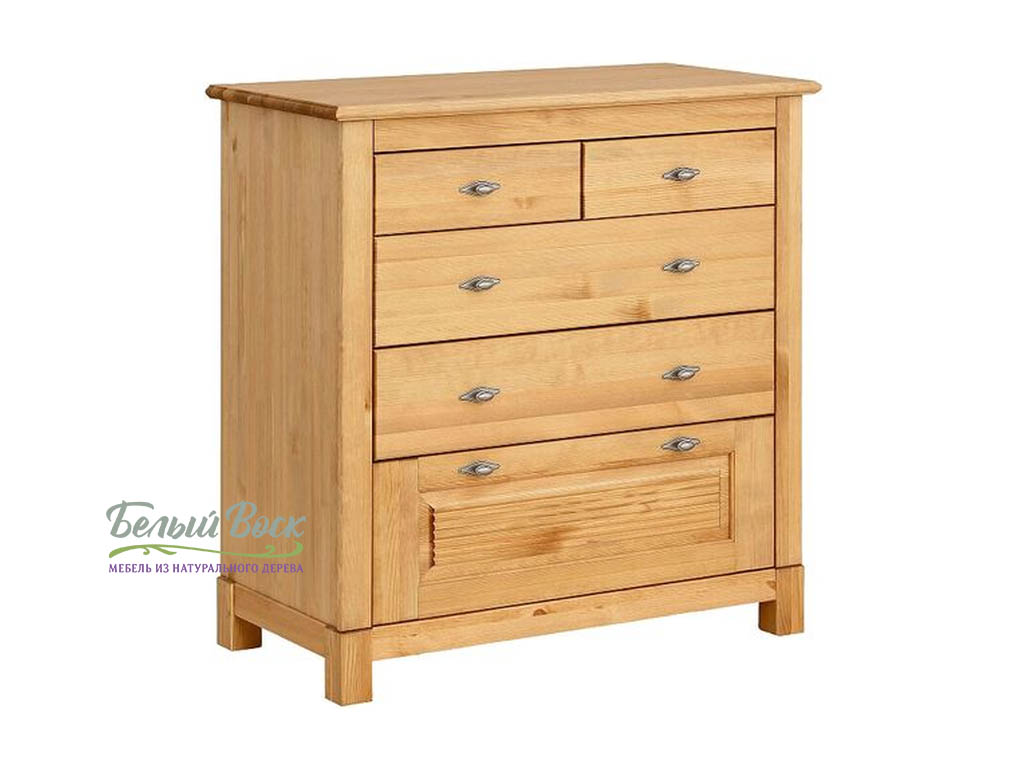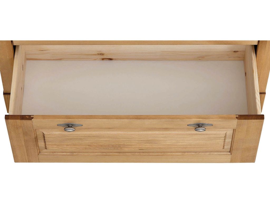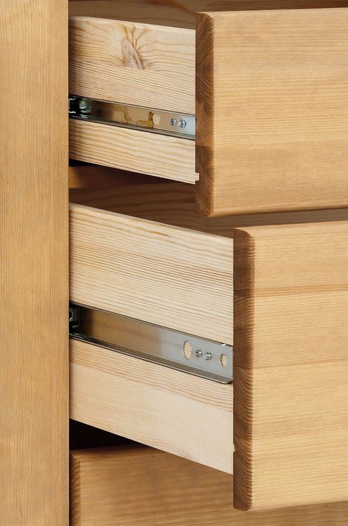 Простой и функциональный комод Рауна займет достойное место в гостиной или спальне. Он оснащен большим отделением для хранения постельного белья, двумя широкими выдвижными ящиками и еще парой поменьше для различных мелочей. Высокие квадратные ножки обеспечивают оптимальную устойчивость, а естественный древесный рисунок придает уникальности каждому изделию.