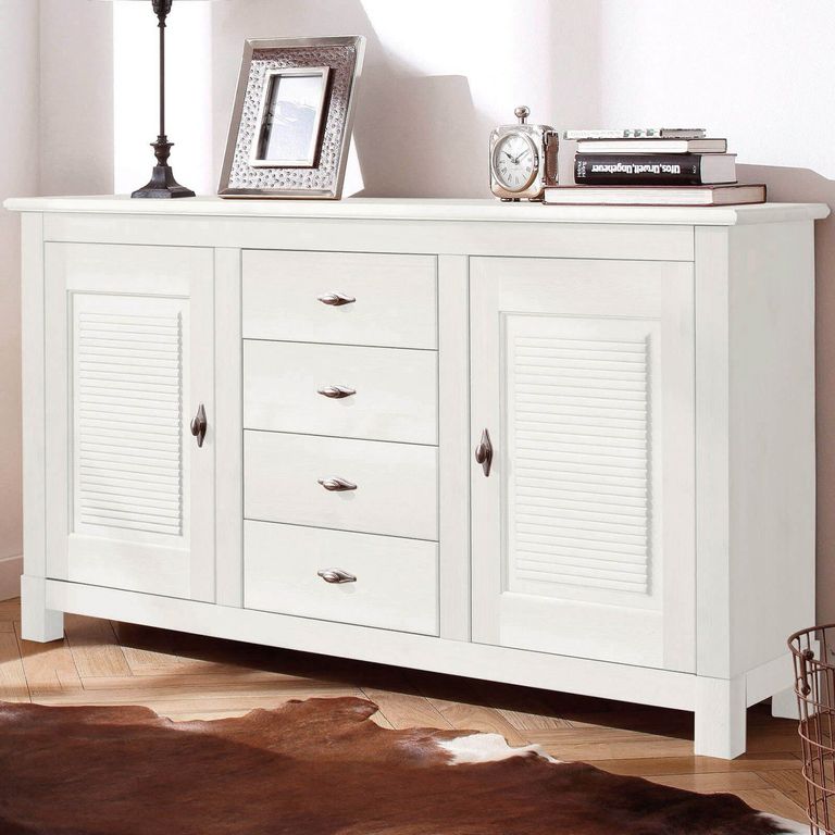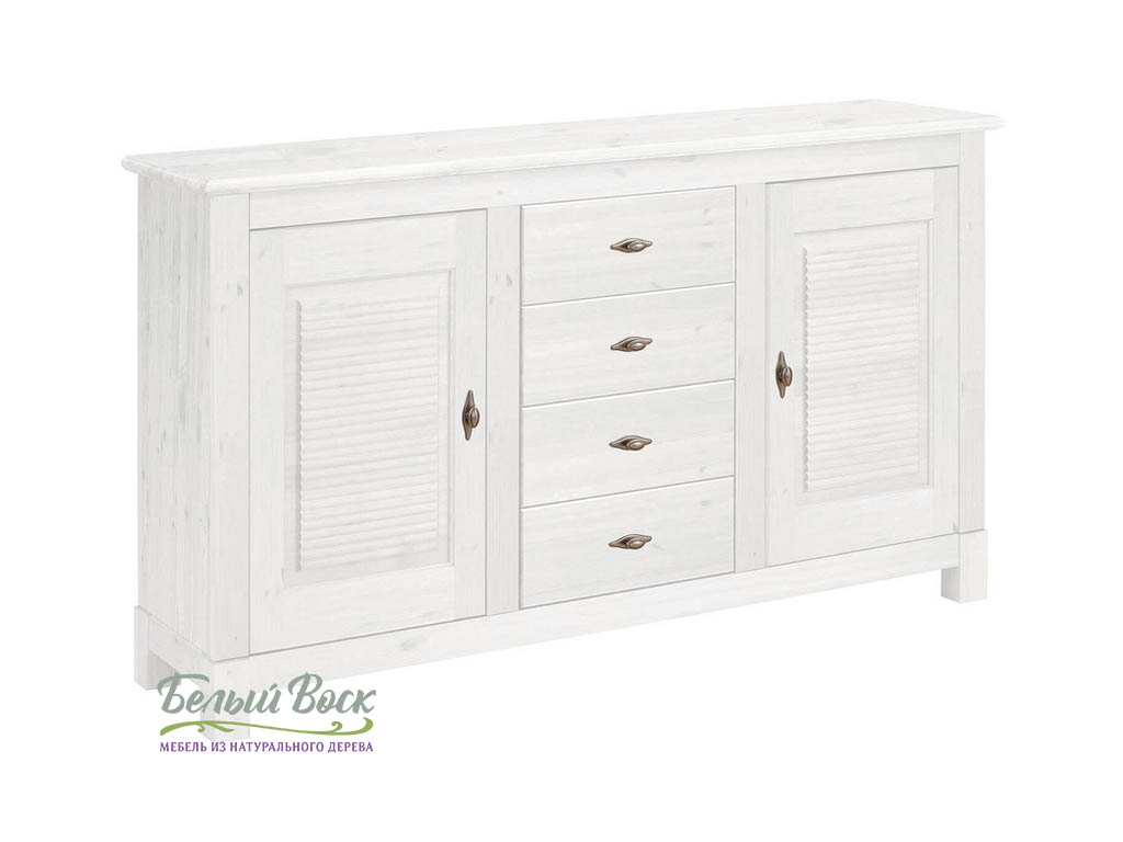 Комод Рауна отличается простым и функциональным дизайном. Эта модель будет хорошо смотреть в спальне, гостиной или просторной прихожей. Визуально разделена на три секции: посередине находятся четыре выдвижных ящика, а по бокам - отделения для хранения за глухими навесными дверцами. Удобная поверхность позволит вам разместить сувениры, фотографии и другие необходимые вещи.
