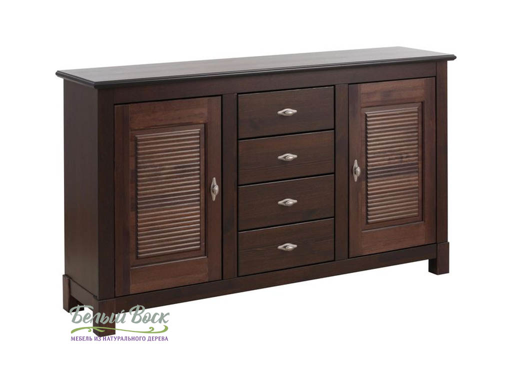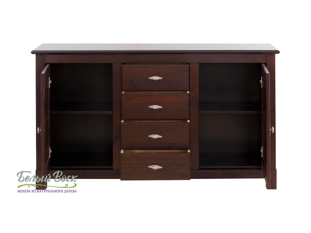 Комод Рауна отличается простым и функциональным дизайном. Эта модель будет хорошо смотреть в спальне, гостиной или просторной прихожей. Визуально разделена на три секции: посередине находятся четыре выдвижных ящика, а по бокам - отделения для хранения за глухими навесными дверцами. Удобная поверхность позволит вам разместить сувениры, фотографии и другие необходимые вещи.