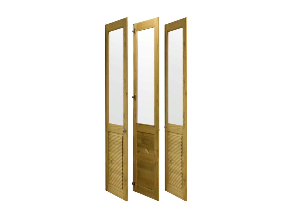 Комплект дверей к стеллажу Рауна-30 из массива сосны. Этот комплект дверей пригодится, если вы предпочитаете закрытое хранение открытому. Внизу - глухие, сверху установлено декоративное стекло, благодаря чему вы сможете красиво расставить любимые сервизы или другие памятные вещи.