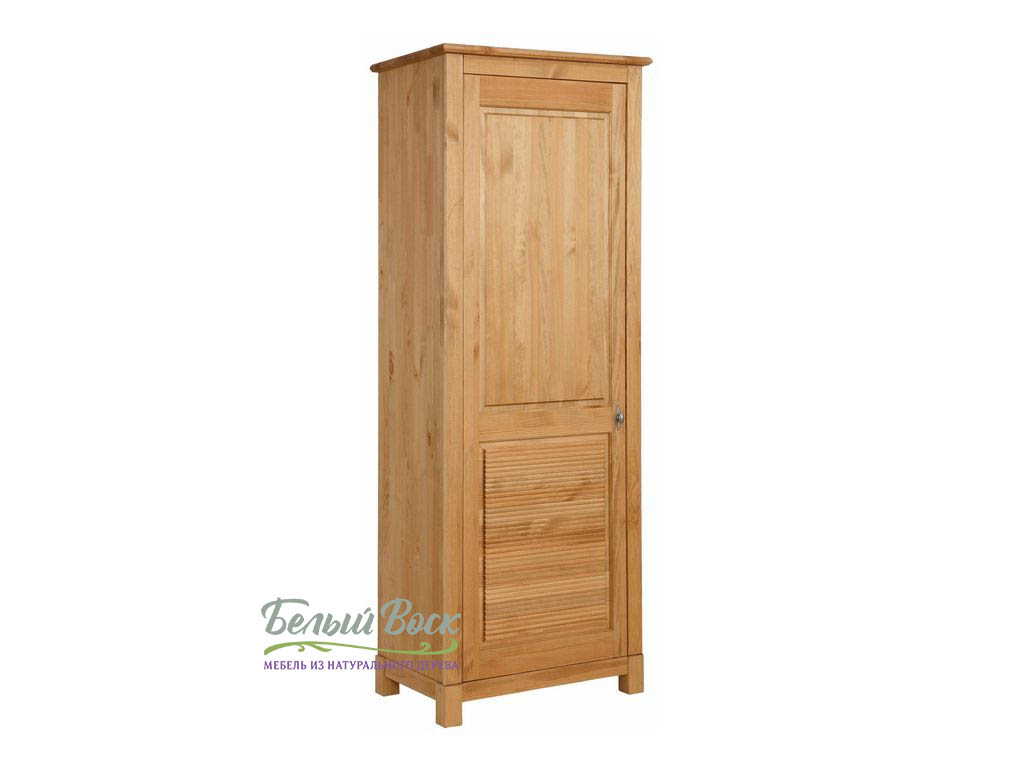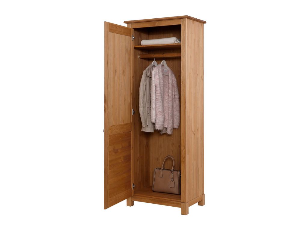 Шкаф Рауна поможет сохранить в порядке одежду даже в самых стесненных условиях. Изготовленный из натурального дерева, он прослужит вам не один год. Оснащен одной навесной дверью, за которой находится пространство для хранения со штангой и с полкой для головных уборов. Открывание двери шкафа только влево.