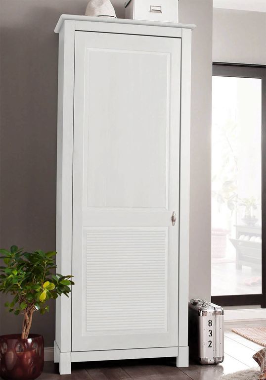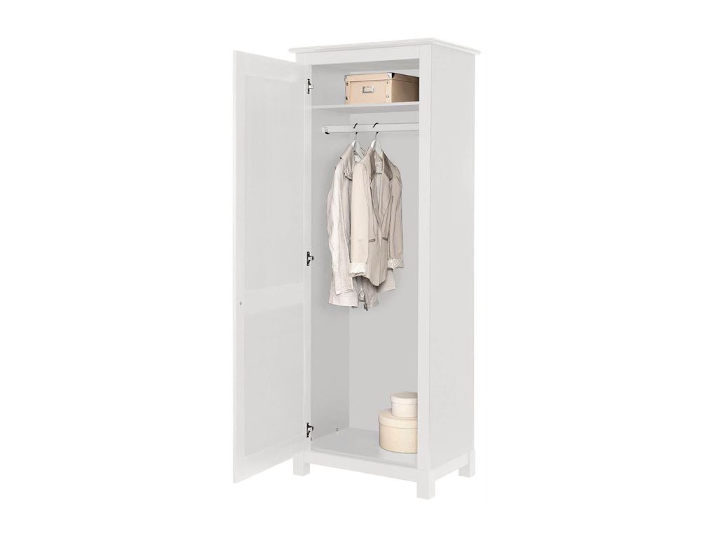 Шкаф Рауна поможет сохранить в порядке одежду даже в самых стесненных условиях. Изготовленный из натурального дерева, он прослужит вам не один год. Оснащен одной навесной дверью, за которой находится пространство для хранения со штангой и с полкой для головных уборов. Открывание двери шкафа только влево.