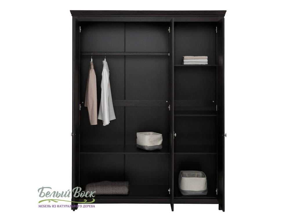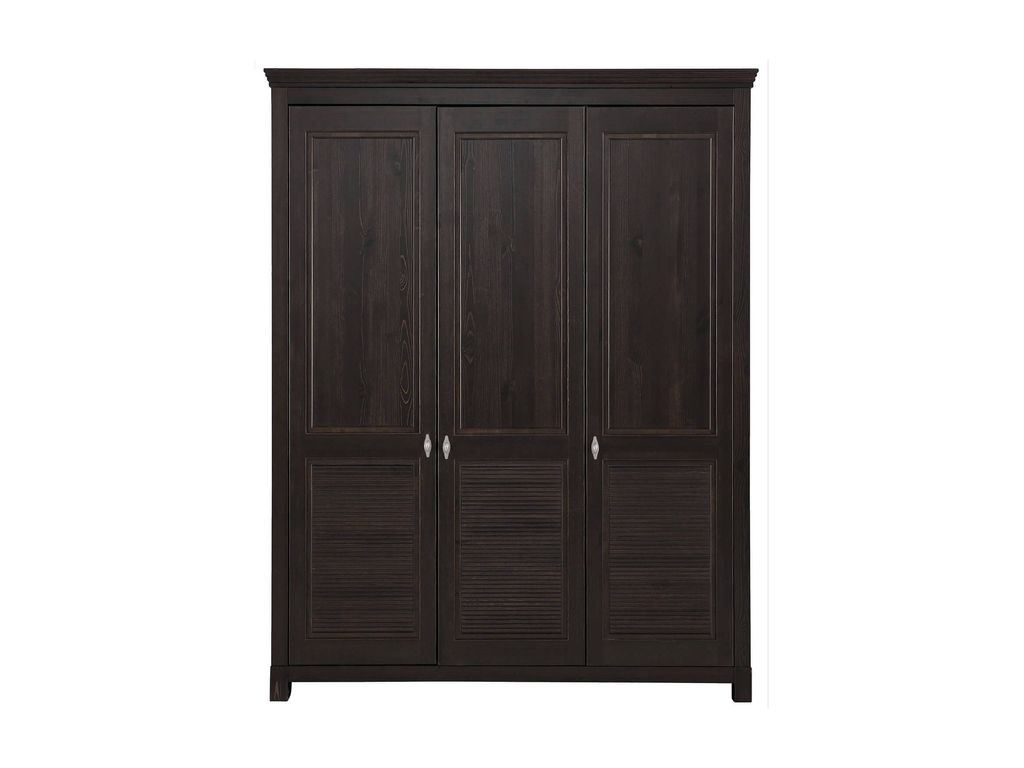 Трехстворчатый шкаф для вещей Рауна удачно впишется в интерьер загородного дома или небольшой квартиры. Он отличается простым, но при этом практичным дизайном. Внутри вы найдете отделение для одежды со штангой, секцию с 4 полками и место для хранения обуви.