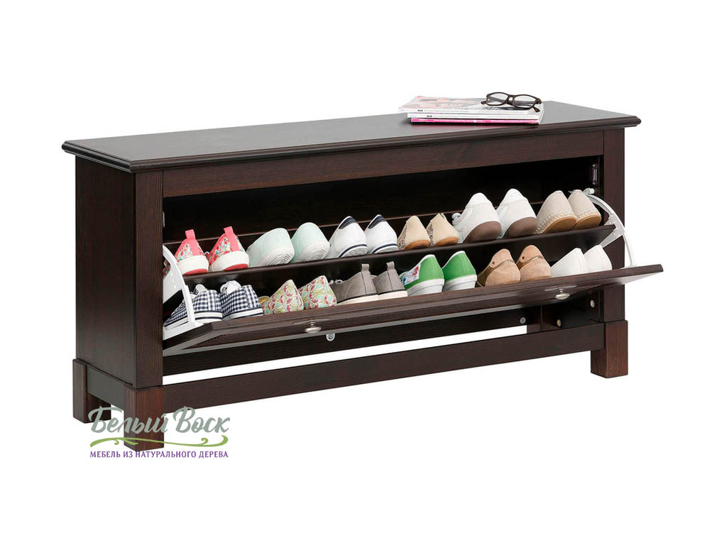 Тумба под обувь Рауна может использоваться в сочетании с другими предметами или отдельно. Она органично впишется даже в небольшую прихожую. Сделана из натурального дерева, благодаря чему отличается надежностью и долговечностью.