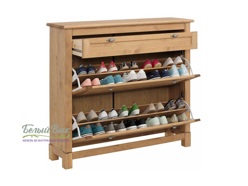 Высокая тумба для обуви Рауна сохранит в порядке весь ваш обувной гардероб. Она состоит из двух вместительных отделений, над которыми находится выдвижной ящик для мелочей. Подойдет как для прихожей в городской квартире, так и для загородного дома.