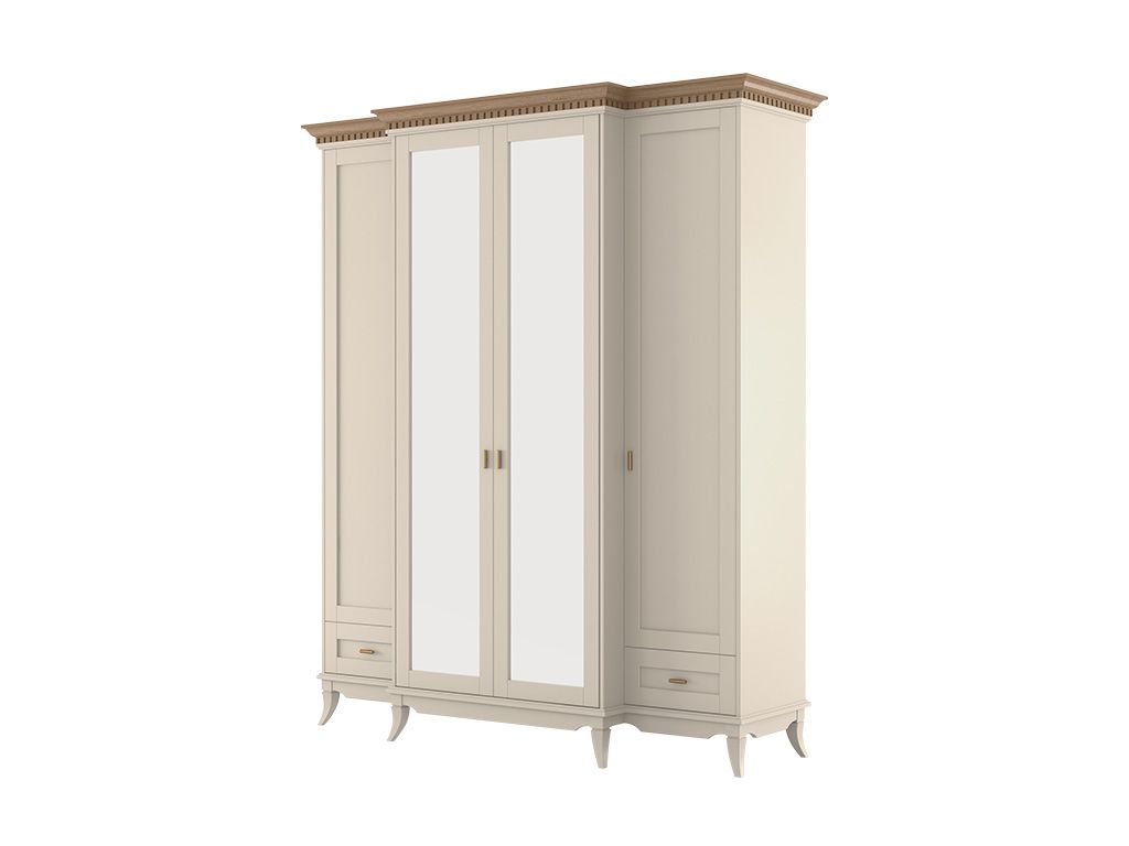 Шкаф с 3 отделениями: центральное широкое — со штангой, в крайних — по 4 полки.