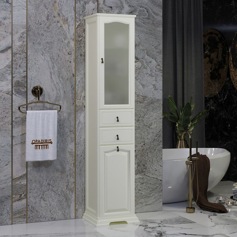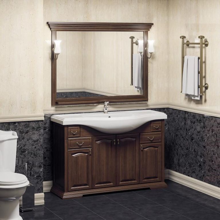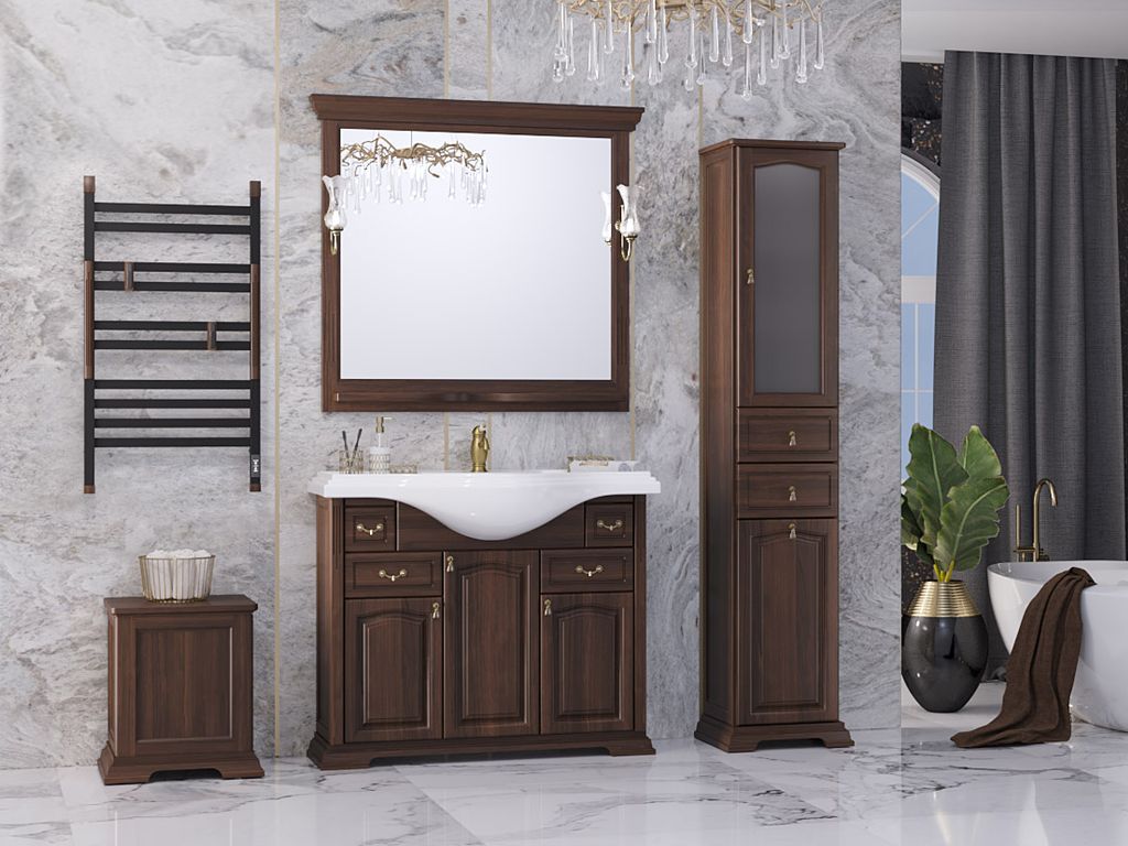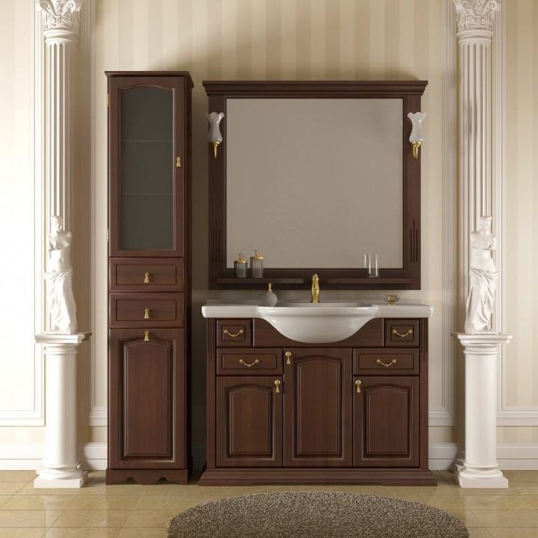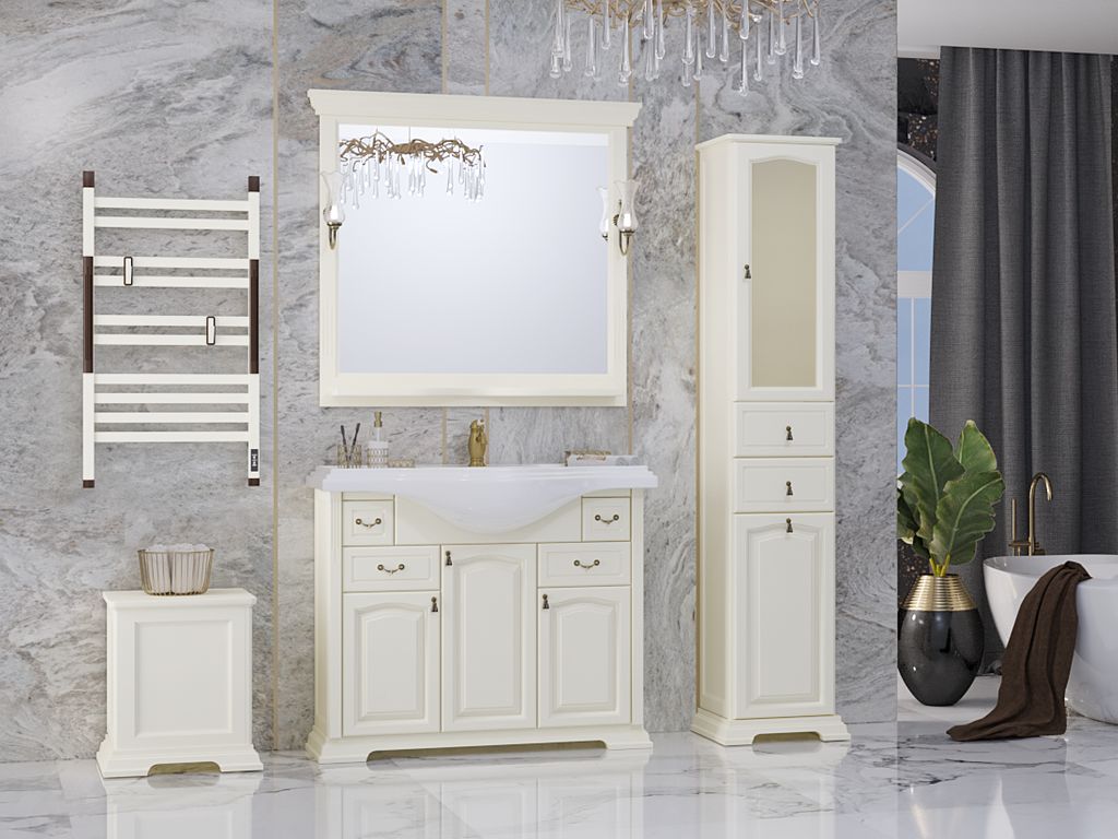 Мебель для ванной комнаты Риспекто удачно сочетает стильный дизайн с максимальной функциональностью. Натуральные материалы в отделке и несколько цветовых решений: антикварный орех, слоновая кость и белая, дают воможности для выбора отделочных материалов ванной. Тумбы коллекции Риспекто оснащены глубокой и практичной керамической раковиной. Набор коллекции Риспекто может быть дополнен одним из вариантов пеналов.