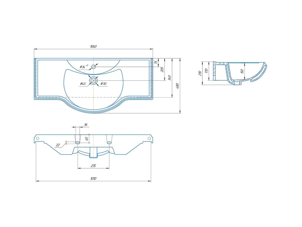 | Размер раковины (Ш×В×Г), мм | 1060×210×480 |