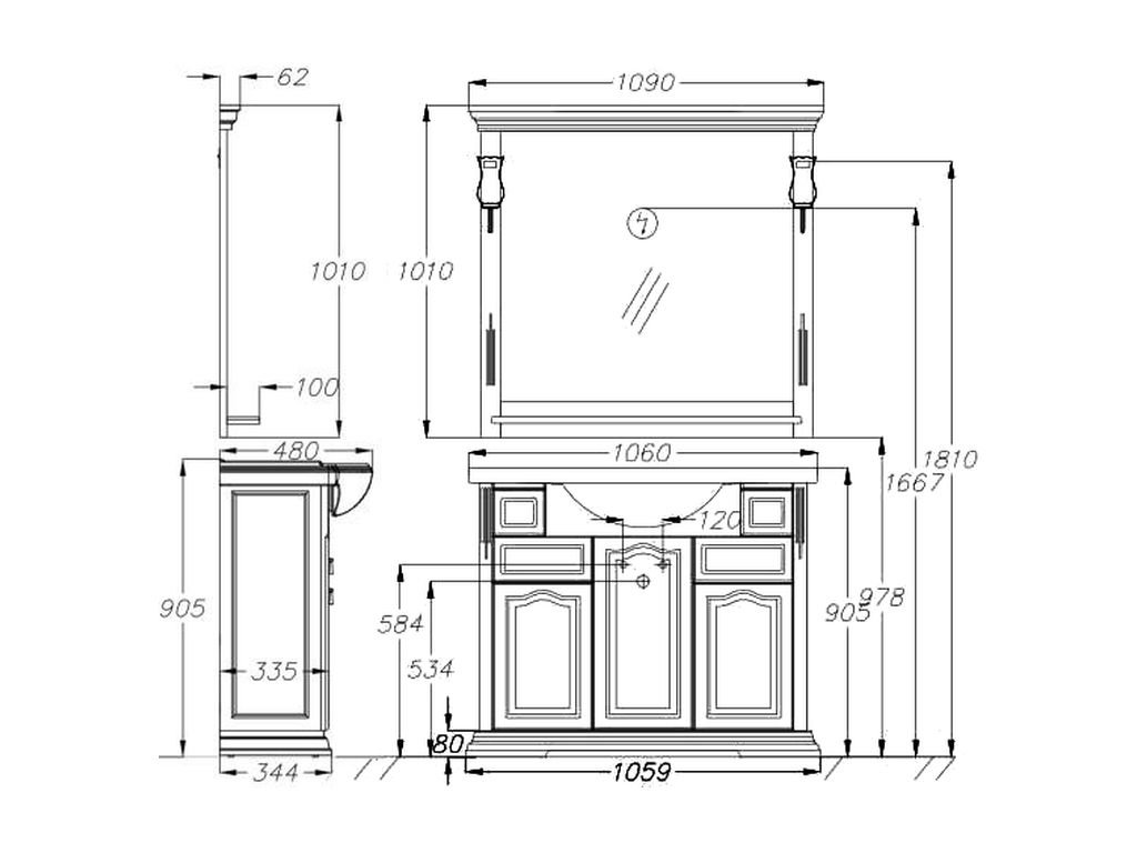 Размер зеркала (Ш×В×Г), мм 1090×1010×100