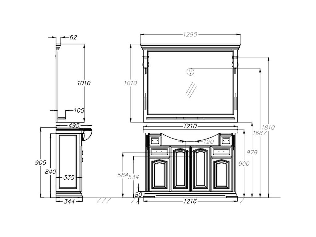 | Размер зеркала (Ш×В×Г), мм | 1290×1010×100 |