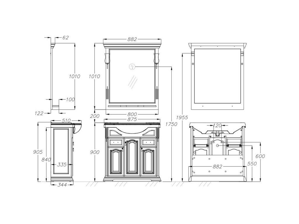 | Размер зеркала (Ш×В×Г), мм | 882×1010×100 |