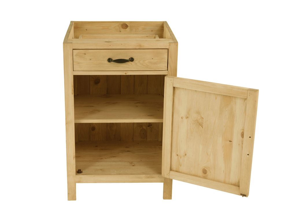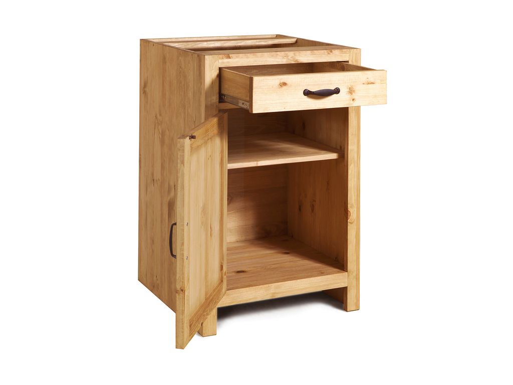 Выдвижной ящик на шариковых направляющих. За дверкой 1 полка. Ручки в комплекте.