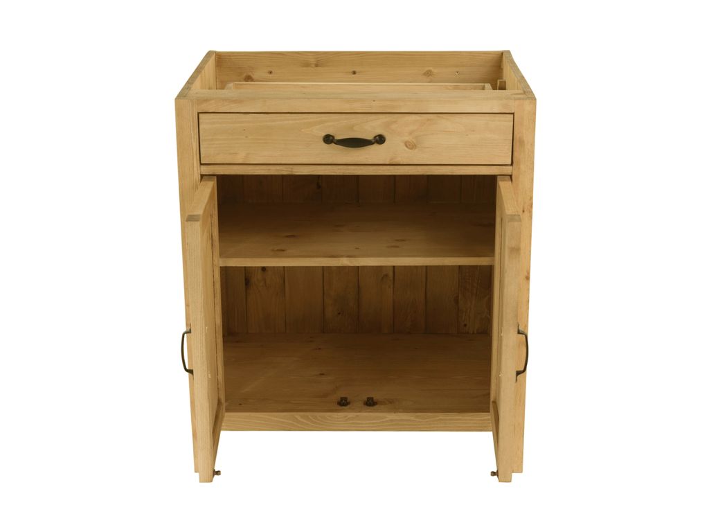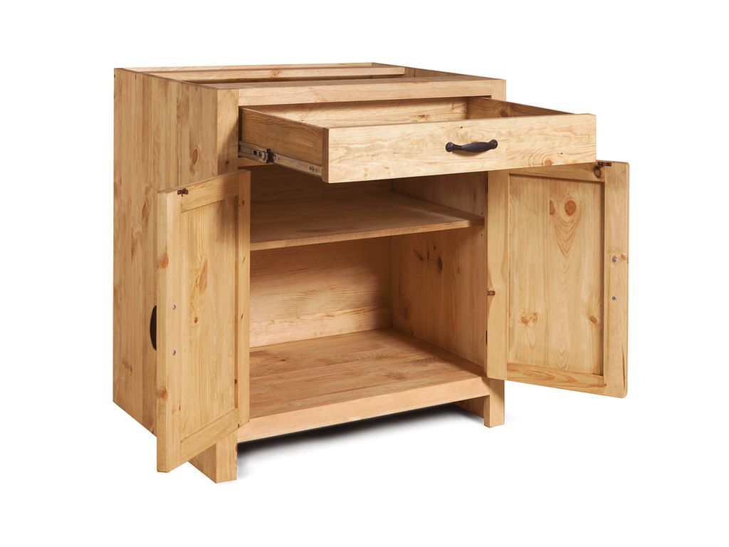 Выдвижной ящик на шариковых направляющих. За дверкой 1 полка. Ручки в комплекте.