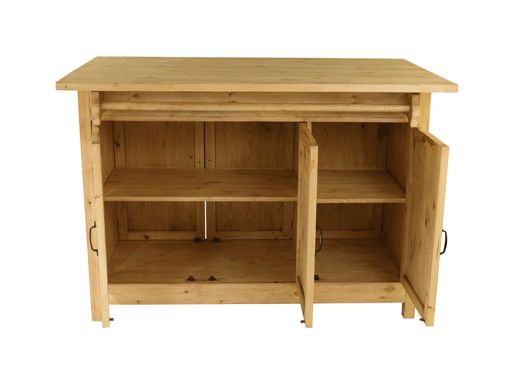 С одной стороны — ящики, с другой — полотенцедержатель, за дверьми одна сплошная полка на всю ширину шкафа, двери с 2-х сторон. Ручки в комплекте.