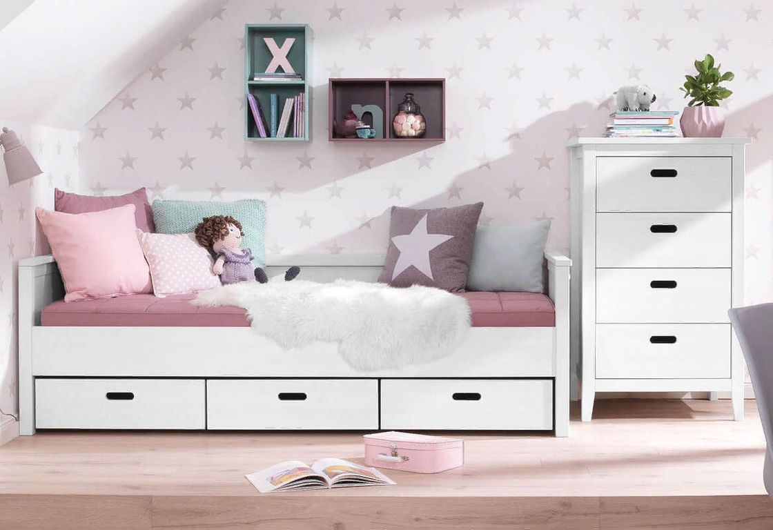 Описание: комод Сиело — удачный элемент деревянной детской мебели, пять выдвижных ящиков на роликовых направляющих.