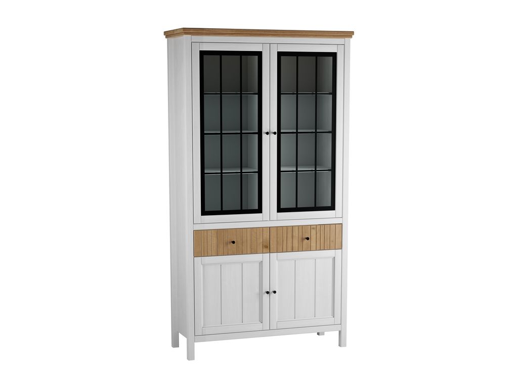 Шкаф для посуды имеет два ящика на шариковых направляющих, две дверки со стеклом и две глухих дверки, за дверками расположены 6 и 2 полки.