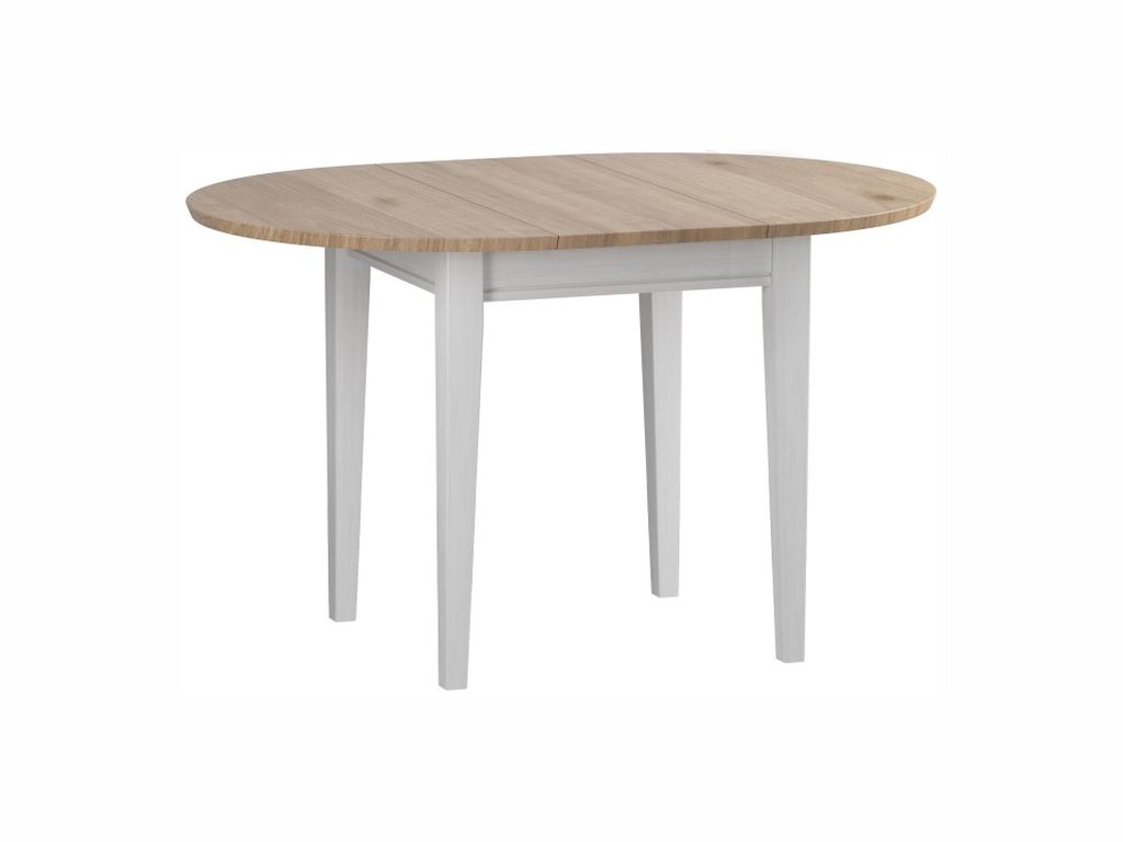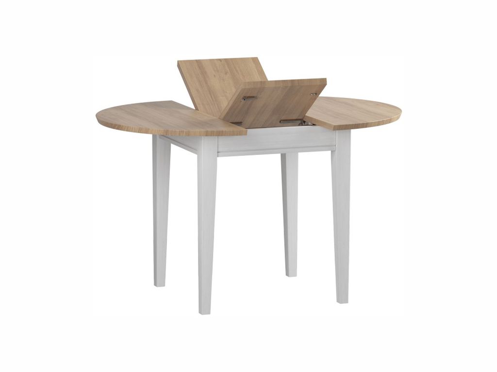 Раскладной обеденный стол из массива сосны. В сложенном состоянии вставка располагается под столешницей. Диаметр стола в сложенном состоянии 90 см, в разложенном состоянии размер стола 90х125 см.