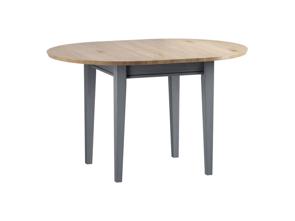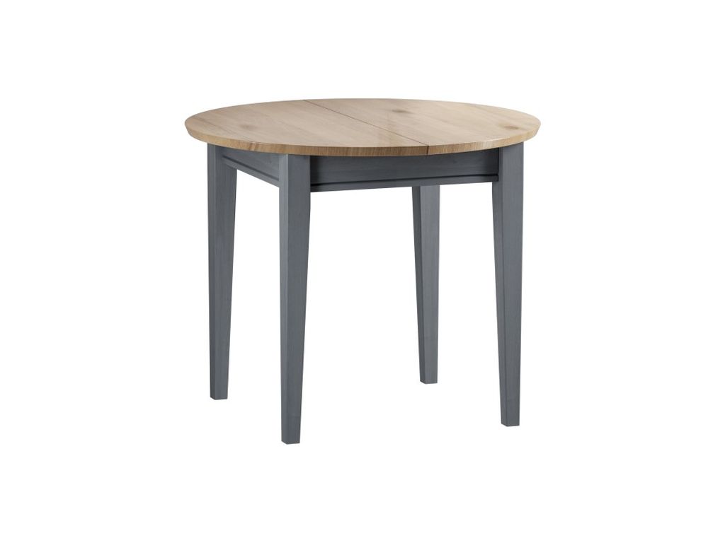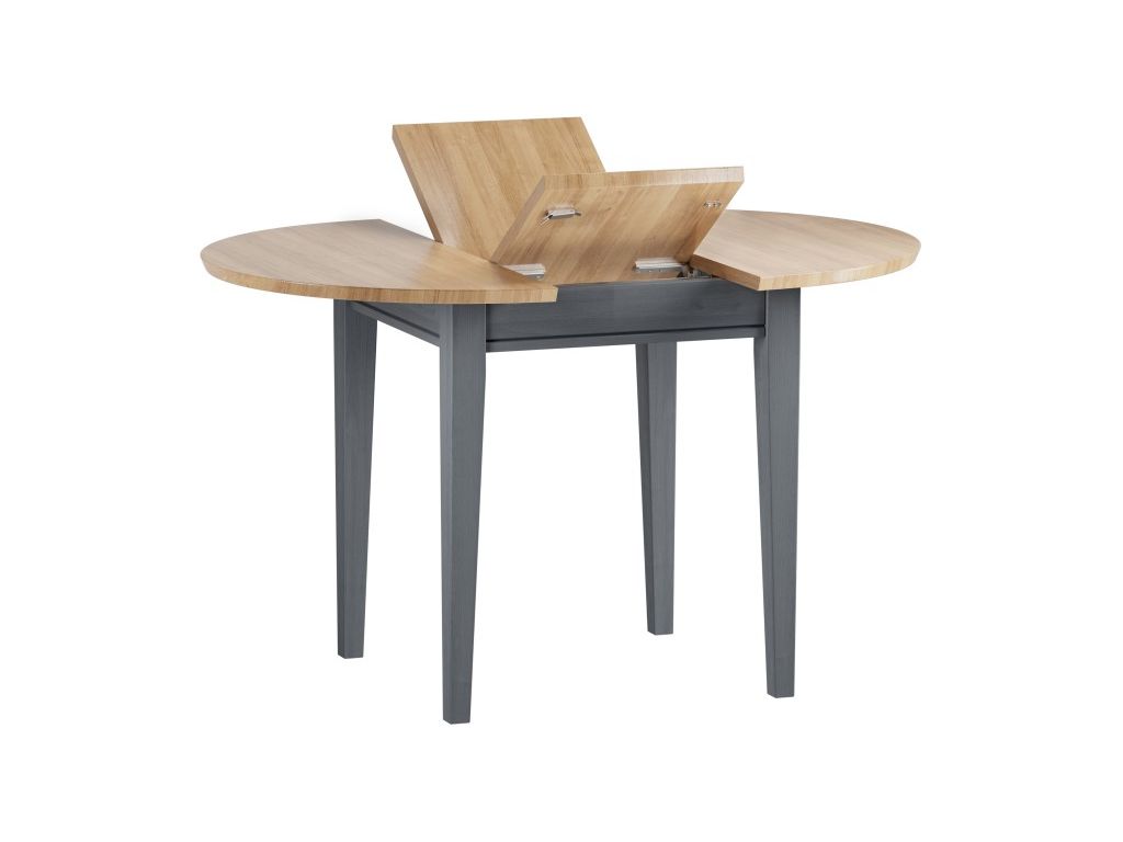 Раскладной обеденный стол из массива сосны. В сложенном состоянии вставка располагается под столешницей. Диаметр стола в сложенном состоянии 90 см, в разложенном состоянии размер стола 90х125 см.
