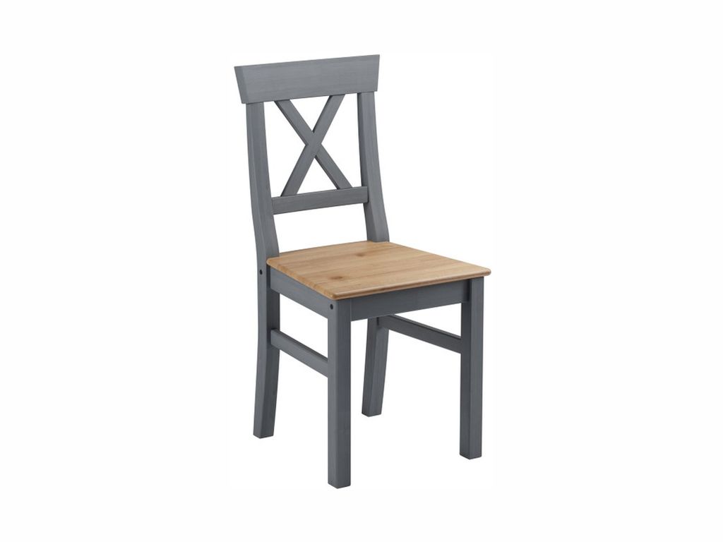 Высота сиденья 45 см. Покрытие - укрывистый серый воск, структура древесины почти не просматривается.