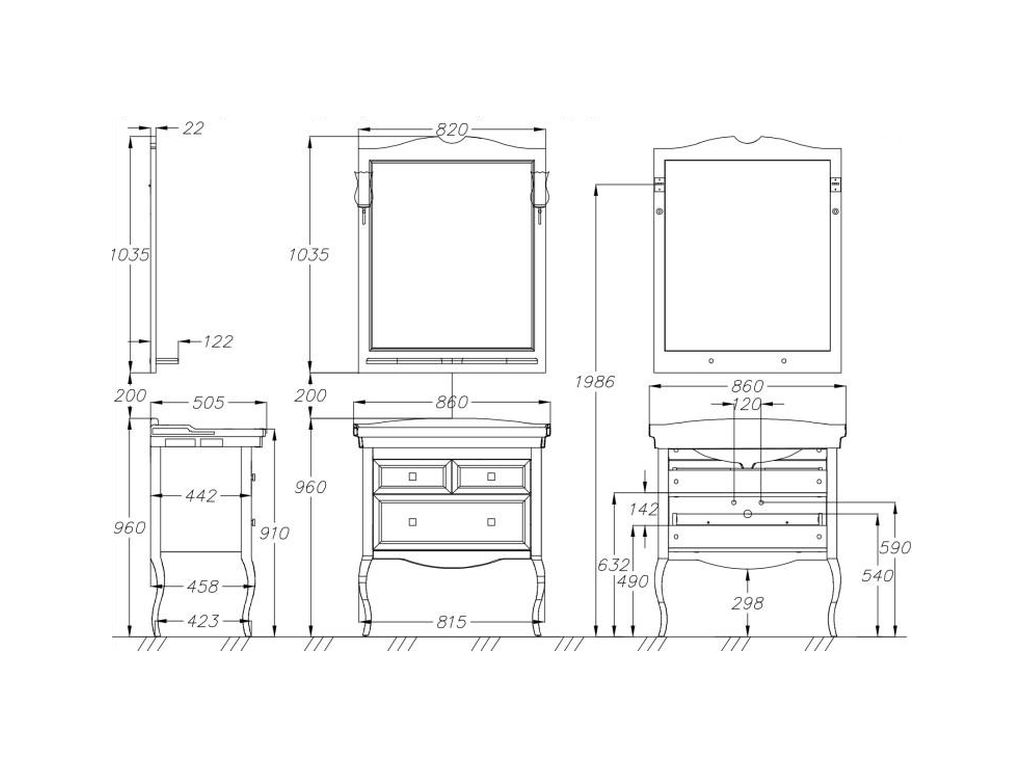 | Размер зеркала (Ш×В×Г), мм | 820×1035×122 |