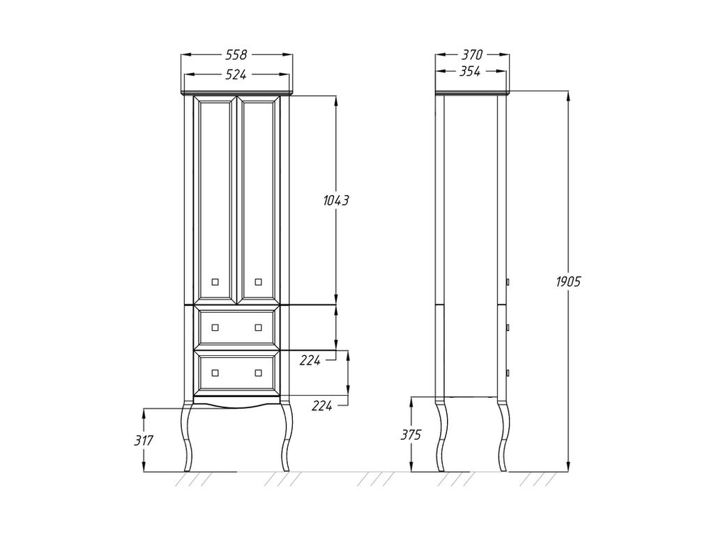 Размер пенала (Ш×В×Г), мм 558×1905×370
