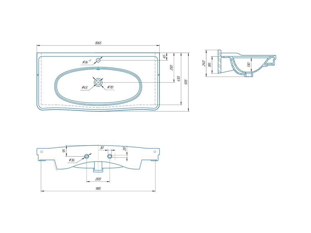 | Размер раковины (Ш×В×Г), мм | 1060×245×500 |