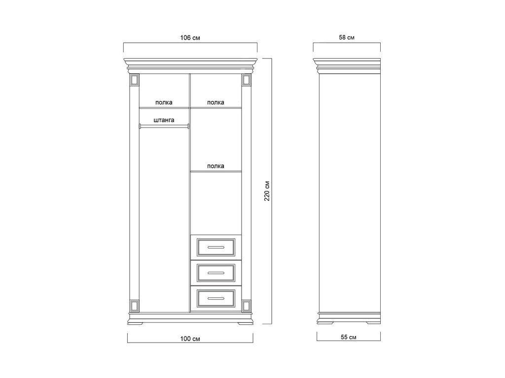 Размеры (ШхВхГ): 1060x2200x580 мм