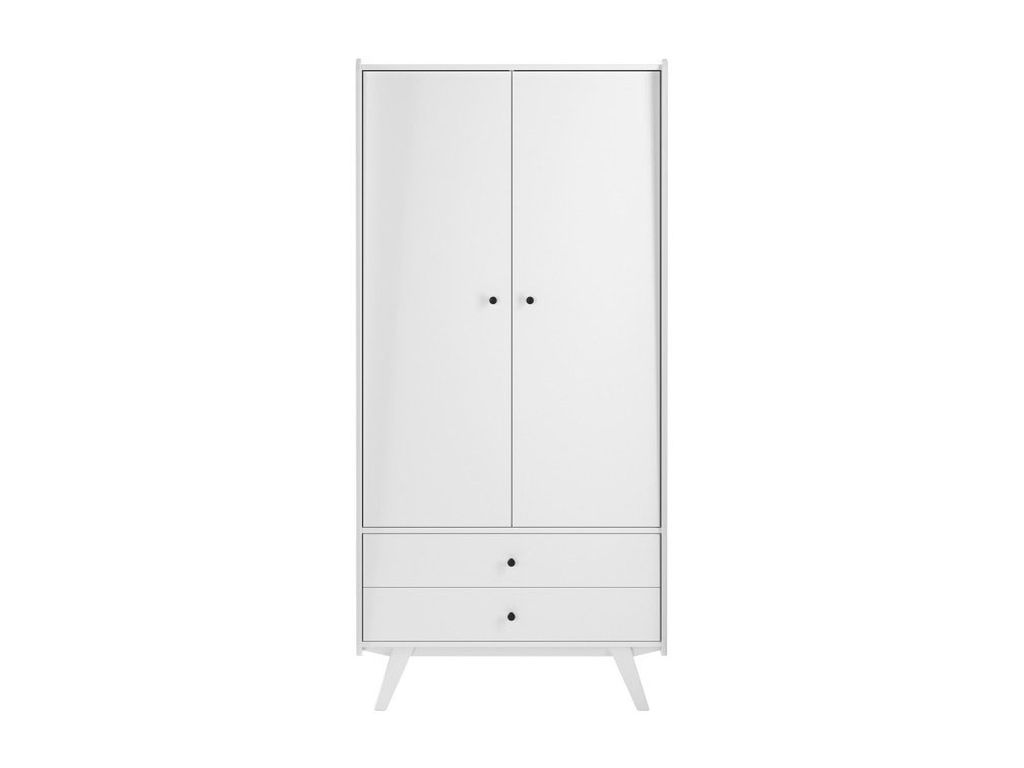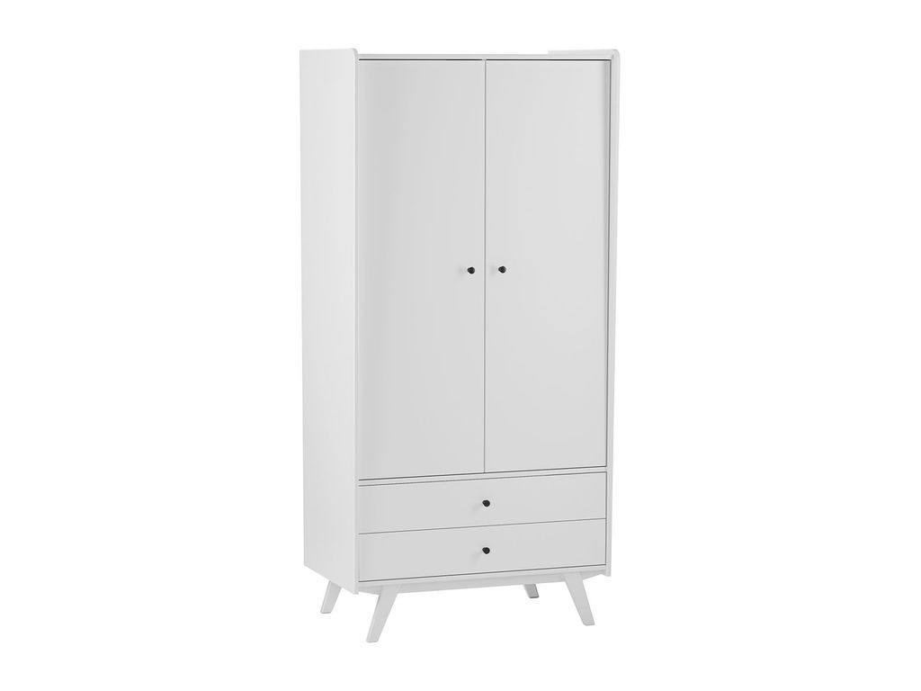 Описание: шкаф имеет 2 ящика на шариковых направляющих с доводчиками и 2 дверки. За каждой правой дверкой расположены три полки, за левой дверкой расположена штанга. Петли дверей с доводчиками.