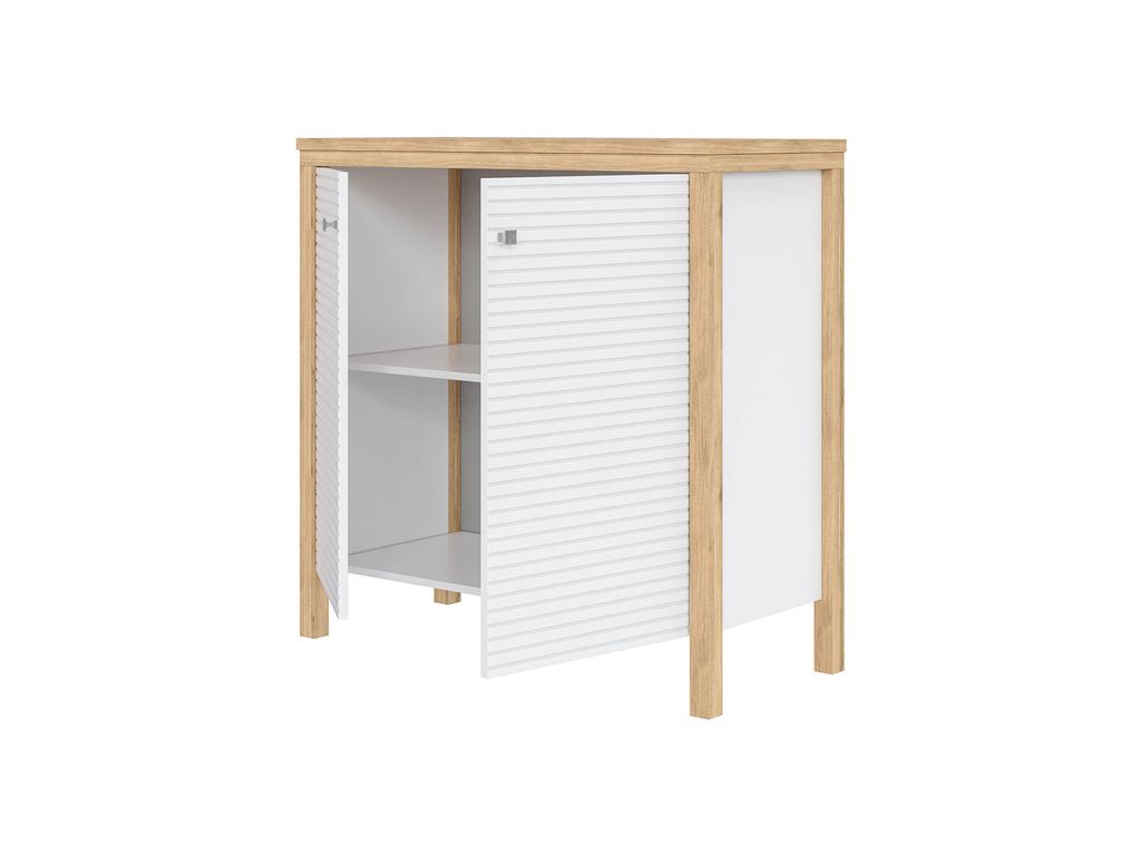 Описание: Тумба (комод) оснащена двумя распашными рифлеными дверками с одной полкой. Фурнитура на дверях с доводчиками. Высокие ножки обеспечивают оптимальный доступ при уборке.