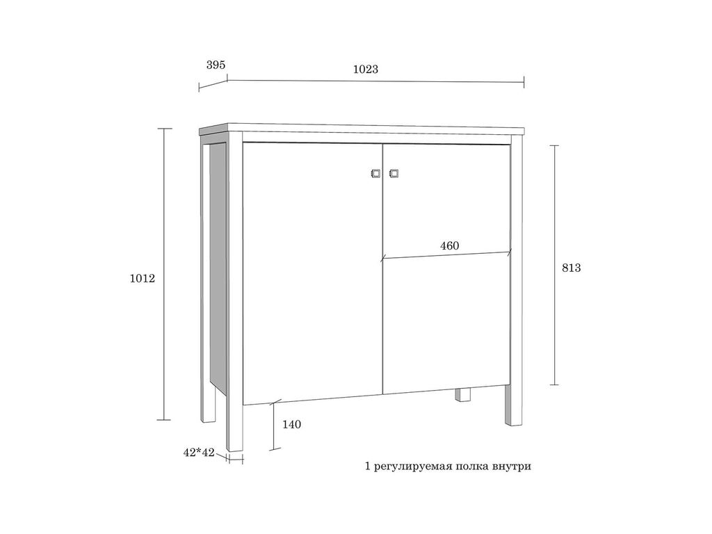 Описание: Тумба (комод) оснащен двумя распашными дверками с одной полкой. Фурнитура на дверях с доводчиками. Высокие ножки обеспечивают оптимальный доступ при уборке.