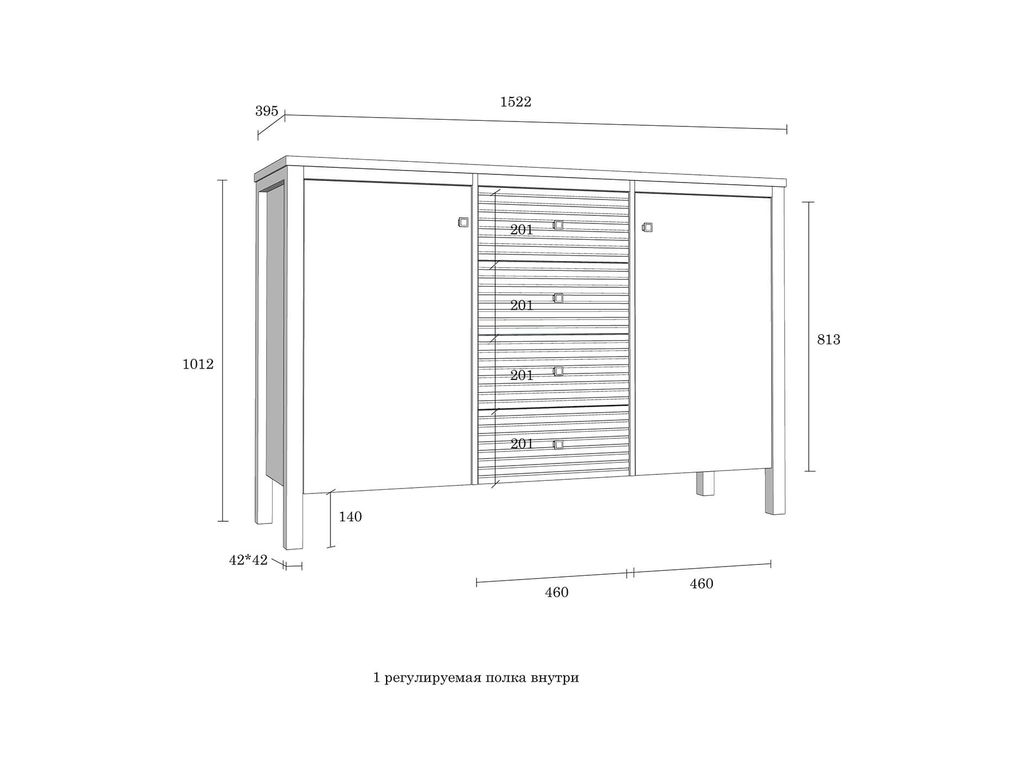 Описание: Тумба (комод) оснащена четырьмя рифлеными ящиками и двумя распашными дверками с полками. Фурнитура на дверях с доводчиками, на ящиках телескопические направляющие полного выдвижения. Высокие ножки обеспечивают оптимальный доступ при уборке.