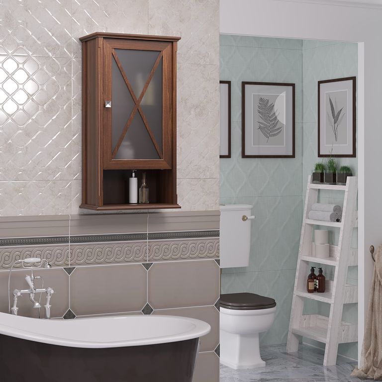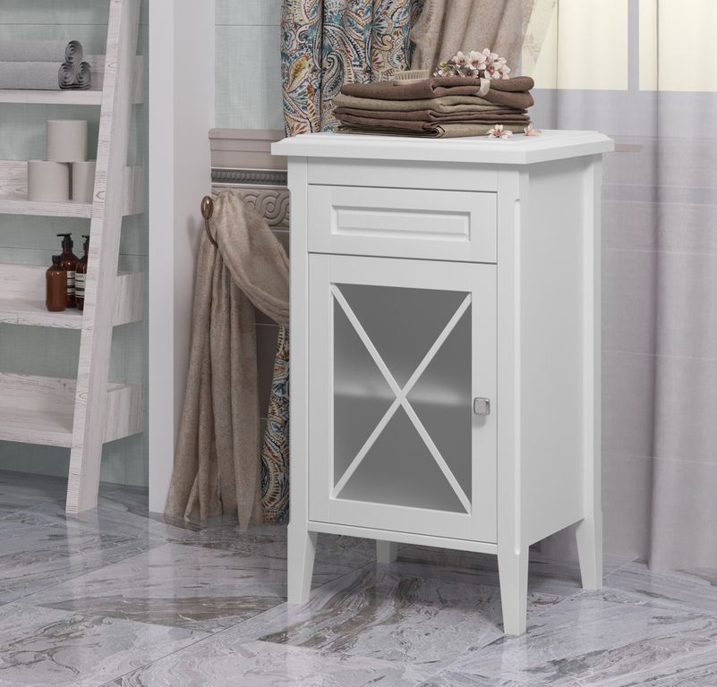 Коллекцию прекрасно дополняет высокий напольный пенал с дверцами с матовым стеклом и выдвижным ящиком.