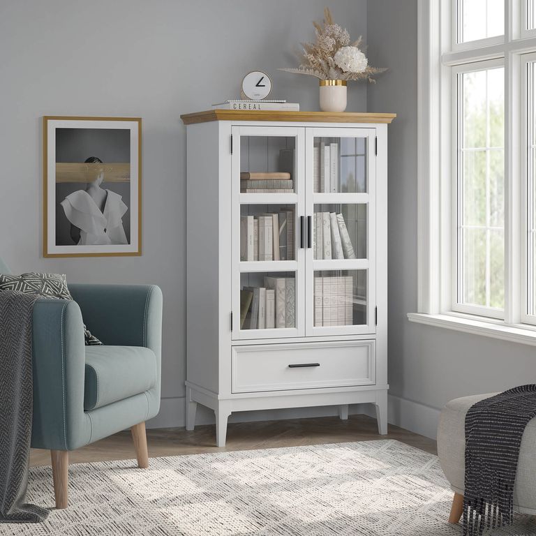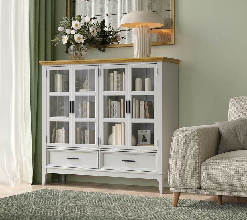 Шкаф для посуды Квадро-С 42 (белый лак + антик 24)
