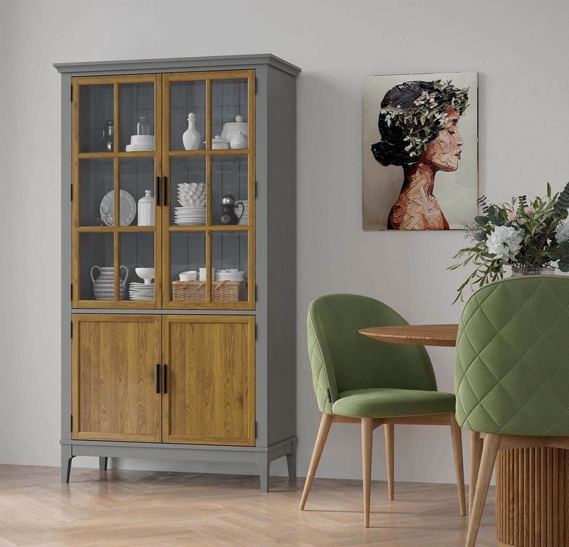 Шкаф для посуды Квадро-С 221-185 (серый 7042 + антик 24)