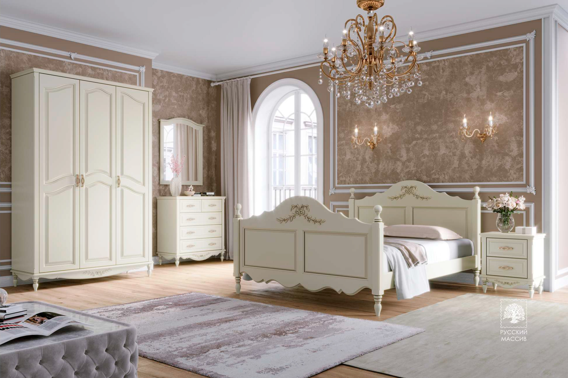 Коллекция, выполненная в стиле Прованс, с характерными для этого дизайна чертами. Базовое окрашивание – эмаль, в цвете “белый” или “слоновая кость” (на фото показано окрашивание “слоновая кость”. Можно изготовить с окрашиванием в любой цвет по RAL (цена повысится). Материалы: мебельный МДФ, комбинированный с массивом бука (несущие нагрузку элементы). По желанию, коллекция может быть выполнена из массива: сосны, березы, бука, ясеня – (цена повысится). При изготовлении мебели целиком из массива, доступны окрашивания в древесные оттенки. Мебель Аделия поставляется, в зависимости от габаритов предмета, или в собранном виде (тумбы, комоды и т.д.) или в разборе (шкафы, кровати).