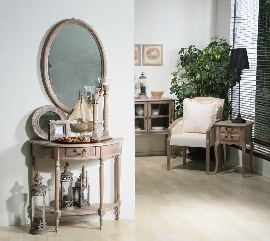 В коллекции большой выбор миниатюрных кофейных столиков, но есть и представители обеденных групп. Столешницы и круглые, и прямоугольные. Консоли и бюро: каждый из вариантов идеален для того, чтобы обыграть пустующий простенок в комнате. Если это проходная зона, то лучше предпочесть полукруглую конфигурацию, которая практически не занимает места. Если же площадь позволяет, то можно остановиться на круглой эффектной консоли или на практичной прямоугольной, на которой разместятся и настольные лампы, и различный интерьерный декор. Также производитель предлагает дополнить мебельный комплект комодами, витринами, стеллажами или зеркалами в виде надставки к мебельной основе. Последние, кстати, способны превратить самую обычную обстановку спальни в атмосферный будуар XVIII-XIX веков.