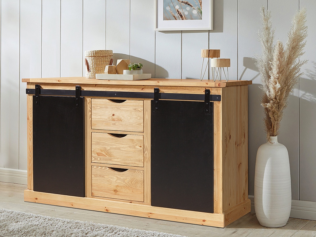 Безусловный акцент в коллекции Roller сделан на сдвижные фасады, движущиеся по металлическим направляющим на роликах. Эта особенность компоновки индустриального стиля, с деревенским кантри, делает мебель Roller заметной и притягательной глазу. Тумбы, комоды или барные модули их этого набора, могут стать ярким акцентом любого интерьера. Все детали (кроме механизмов сдвижения фасадов) выполнены из массива сосны и покрыты экологичными ЛКМ.