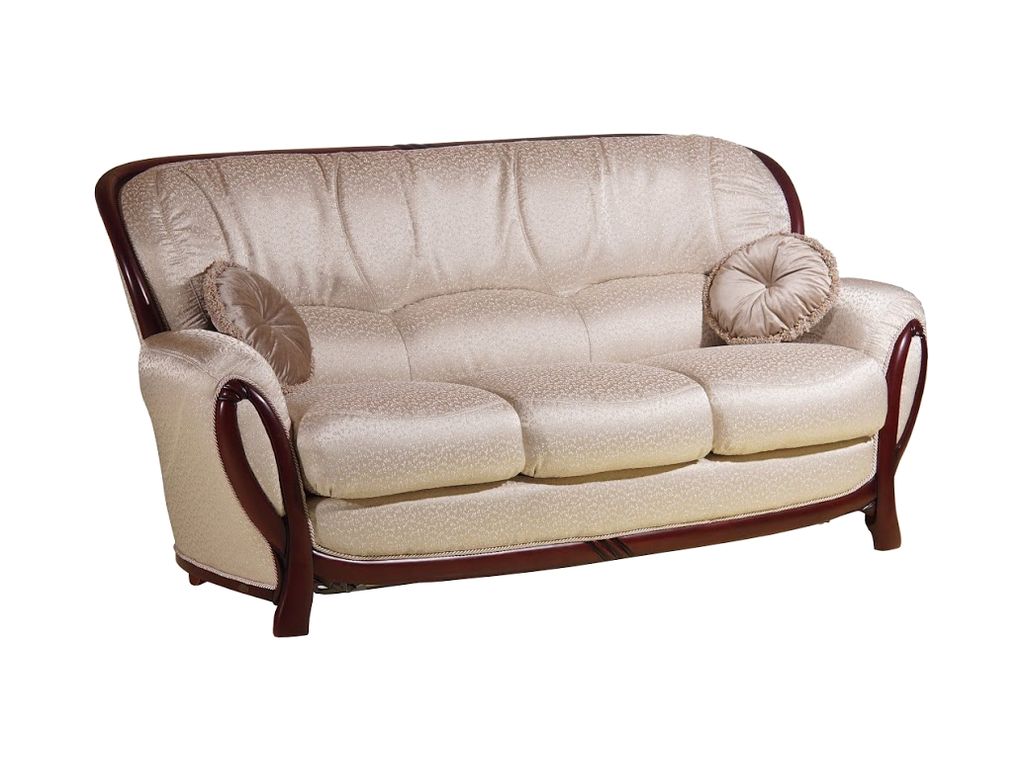 Диван Флоренция может быть изготовлен в различного цвета тканях, экокожах и натуральных кожах. Так же на выбор предлагается несколько вариантов окрашивания древесного декора. Все образцы материалов можно увидеть в нашем магазине!