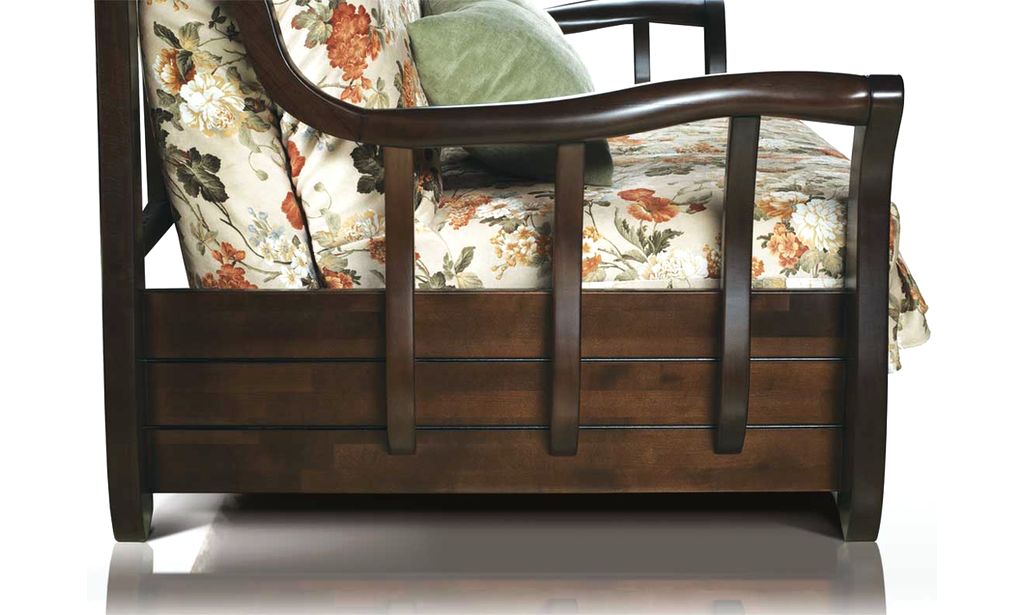 Диван Фрегат 03 может быть изготовлен в различного цвета тканях, экокожах и натуральных кожах. Так же на выбор предлагается несколько вариантов окрашивания древесного декора. Все образцы материалов можно увидеть в нашем магазине!