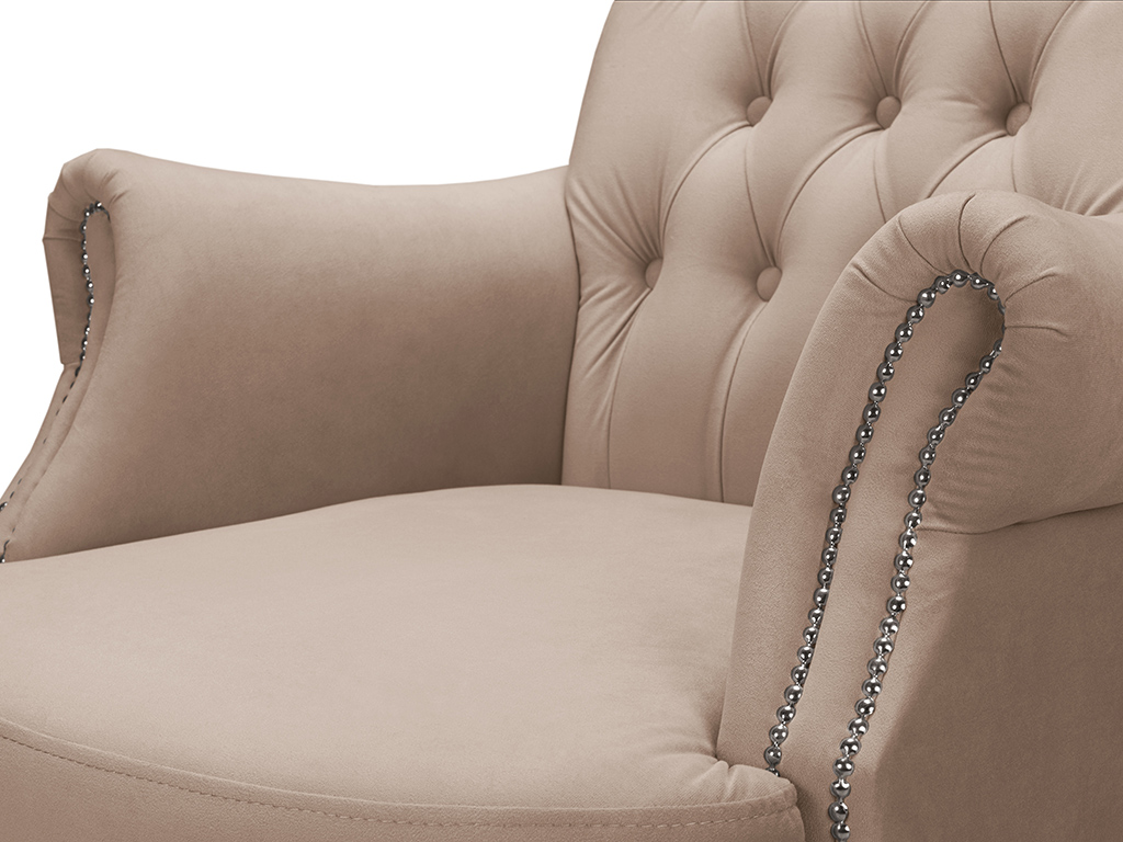 Декор - гвоздевой молдинг, пуговицы обтянуты тканью. Возможен вариант: вместо пуговиц, изготовление пуговиц-страз.