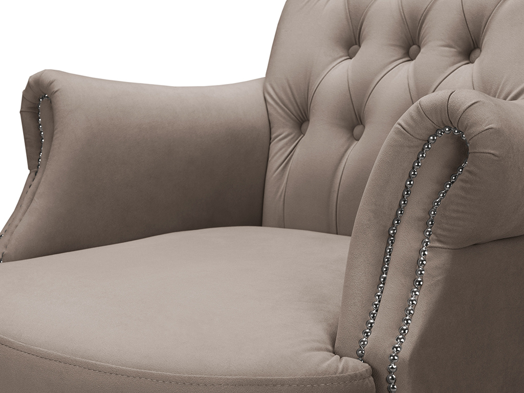 Декор - гвоздевой молдинг, пуговицы обтянуты тканью. Возможен вариант: вместо пуговиц, изготовление пуговиц-страз.
