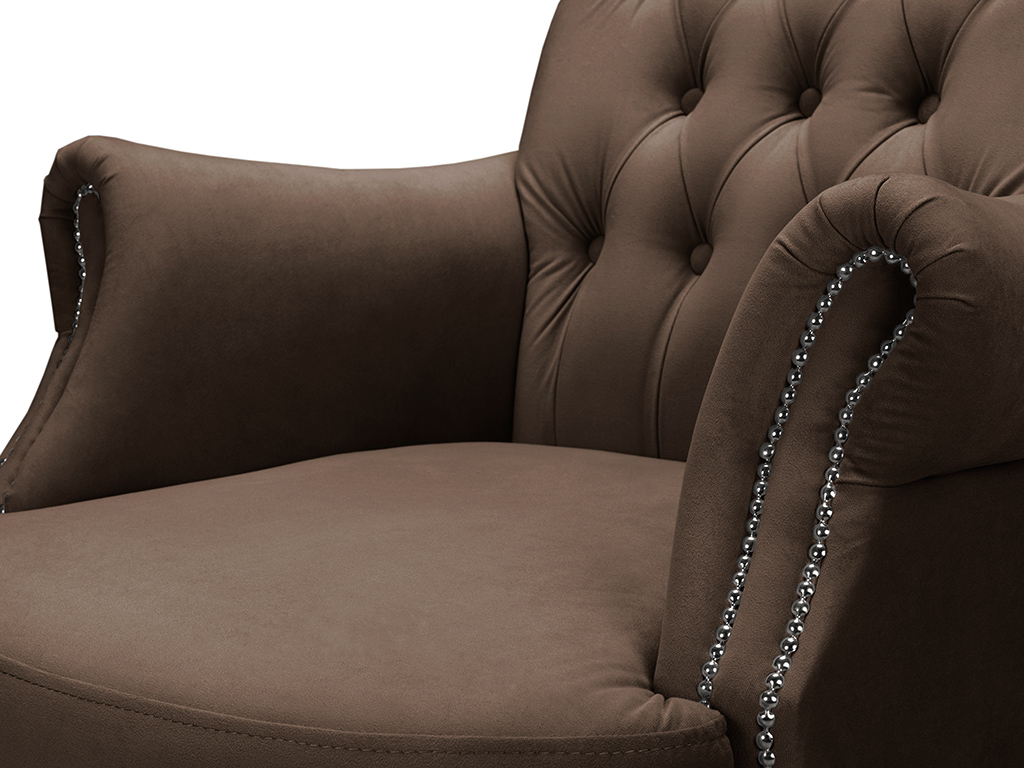 Декор - гвоздевой молдинг, пуговицы обтянуты тканью. Возможен вариант: вместо пуговиц, изготовление пуговиц-страз.