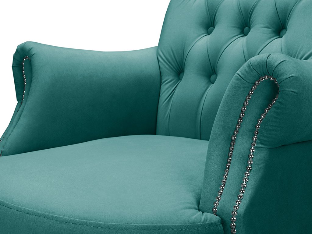 Декор - гвоздевой молдинг, пуговицы обтянуты тканью. Возможен вариант: вместо пуговиц, изготовление пуговиц-страз.