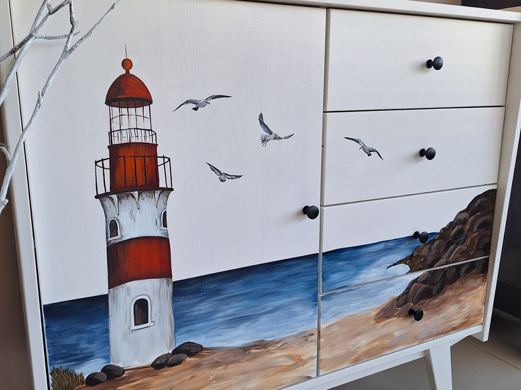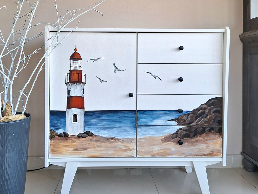 Комод из коллекции Винтаж с индивидуальной росписью в морском стиле.