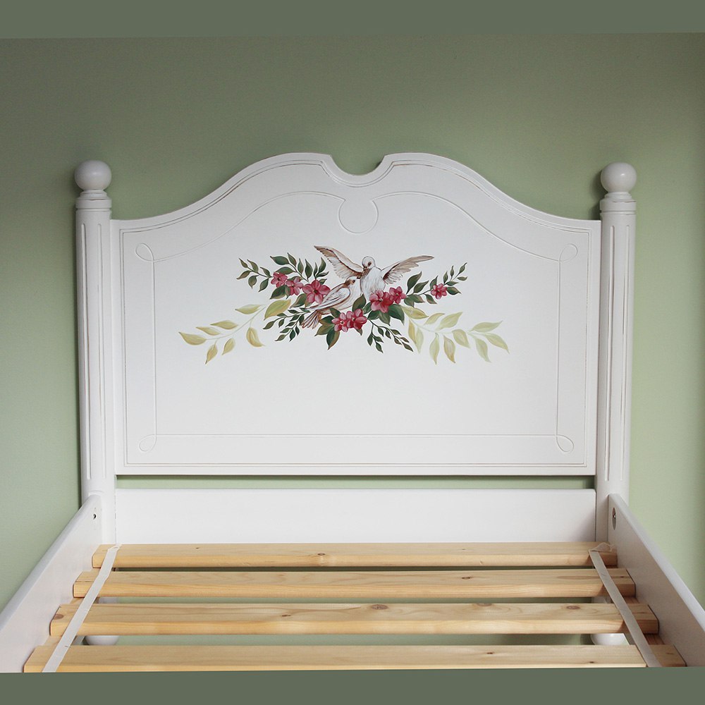Кроватка из коллекции Бетти, выполнена из массива сосны с индивидуальным окрашиванием изголовья и изножья, а так же эффектом старения (потертости эмали до дерева, выполненные вручную). Размер спального места 800х1900 мм. Так же кроватка может быть изготовлена на заказ с другим размером и (или) рисунком и цветом.