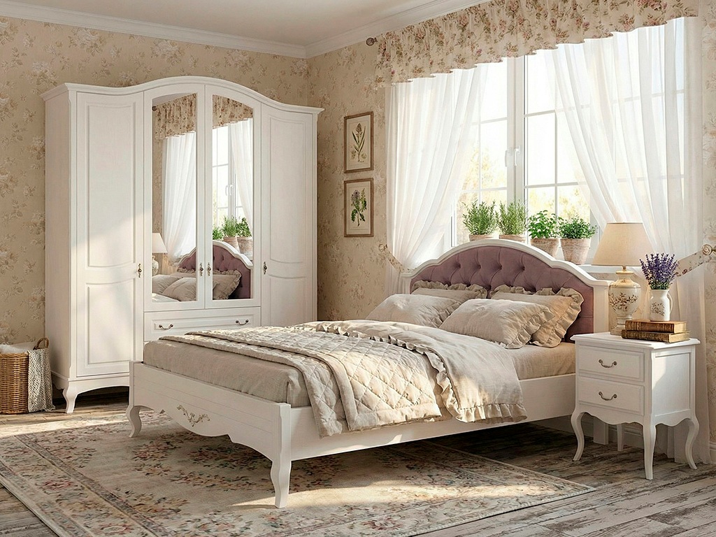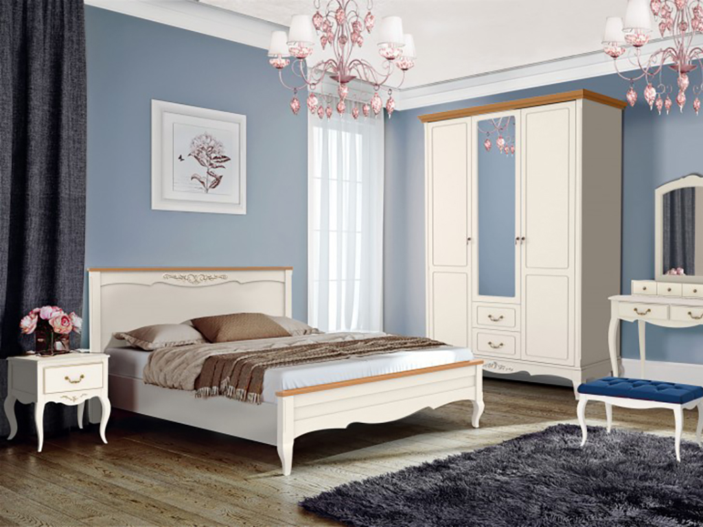 Авиньон - классическая коллекция мебели для спальни. Производитель предлагает вариант окрашивания эмалями (белая и слоновая кость) с использованием материалов: массив бука с элементами МДФ. Так же, спальню Авиньон можно выкрасить в древесные цвета, при этом используется 100% массив бука. Применение отдельных элементов МДФ в сочетании с деревом, позволяет снизить стоимость коллекции. Более подробную информацию по данному вопросу можно получить у наших менеджеров! Набор спальни Авиньон довольно широк: кровати различных размеров и конфигураций, прикроватные тумбы, комоды, шкафы от 1-створчатого, до 4-створчатого, письменные столы, консоли и туалетные столики. Коллекция выпускается в двух конфигурациях: ножка "кабриоль" и точеная ножка - "Амелия". Меебль для спальни Авиньон не оставит равнодушными любителей как классического стиля в интерьре, так и Прованса.